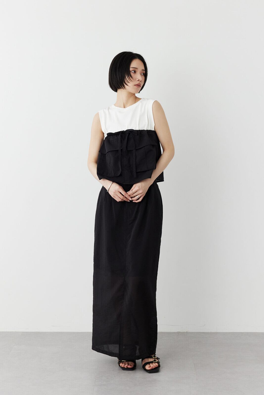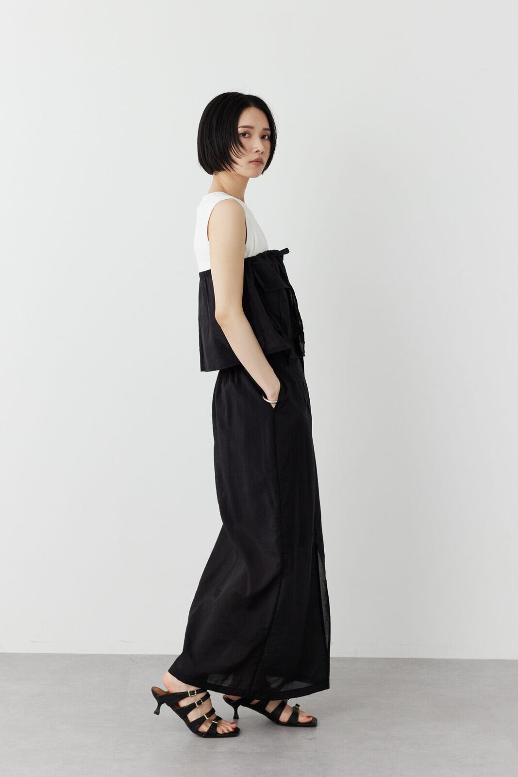 シアー感のあるテンセルナイロン素材のビスチェが軽やかな印象。