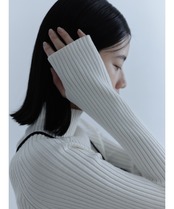 身体のラインをきれいに見せてくれるシルエットもポイントです。 袖丈は長めにとってあり手元に施したフィンガーホールに指を入れグローブのようなニュアンスで袖を通す事が可能。 程よくフィットするタイトシルエットで使いやすいニットのプルオーバーはワードロープに加えておきたい1枚。