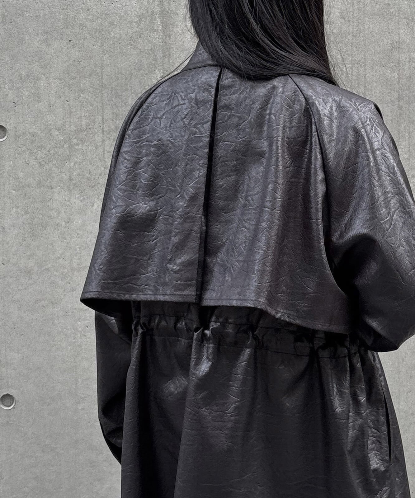 こなれ感のあるオーバーサイズシルエットに加え、フレアを効かせたケープデザインがポイントです。