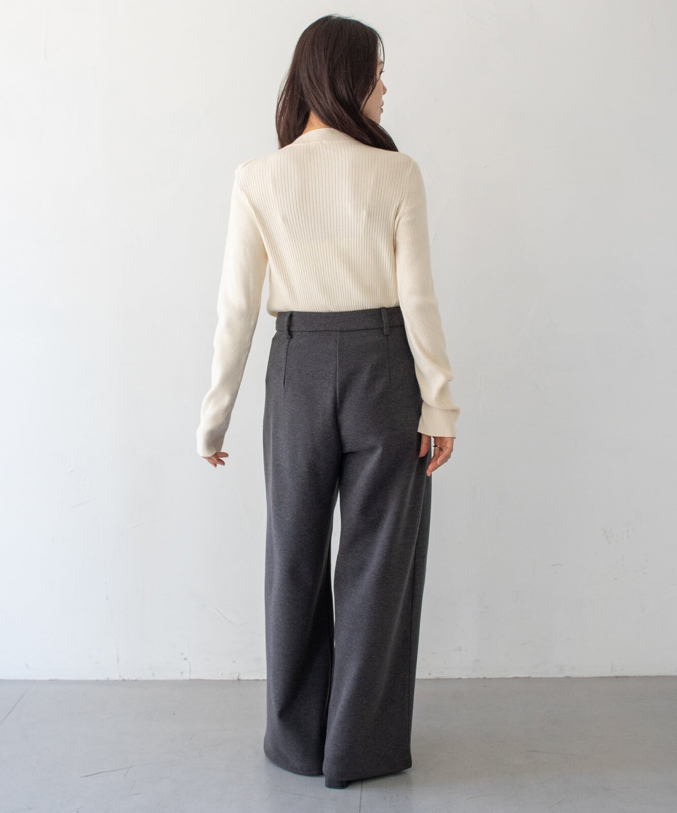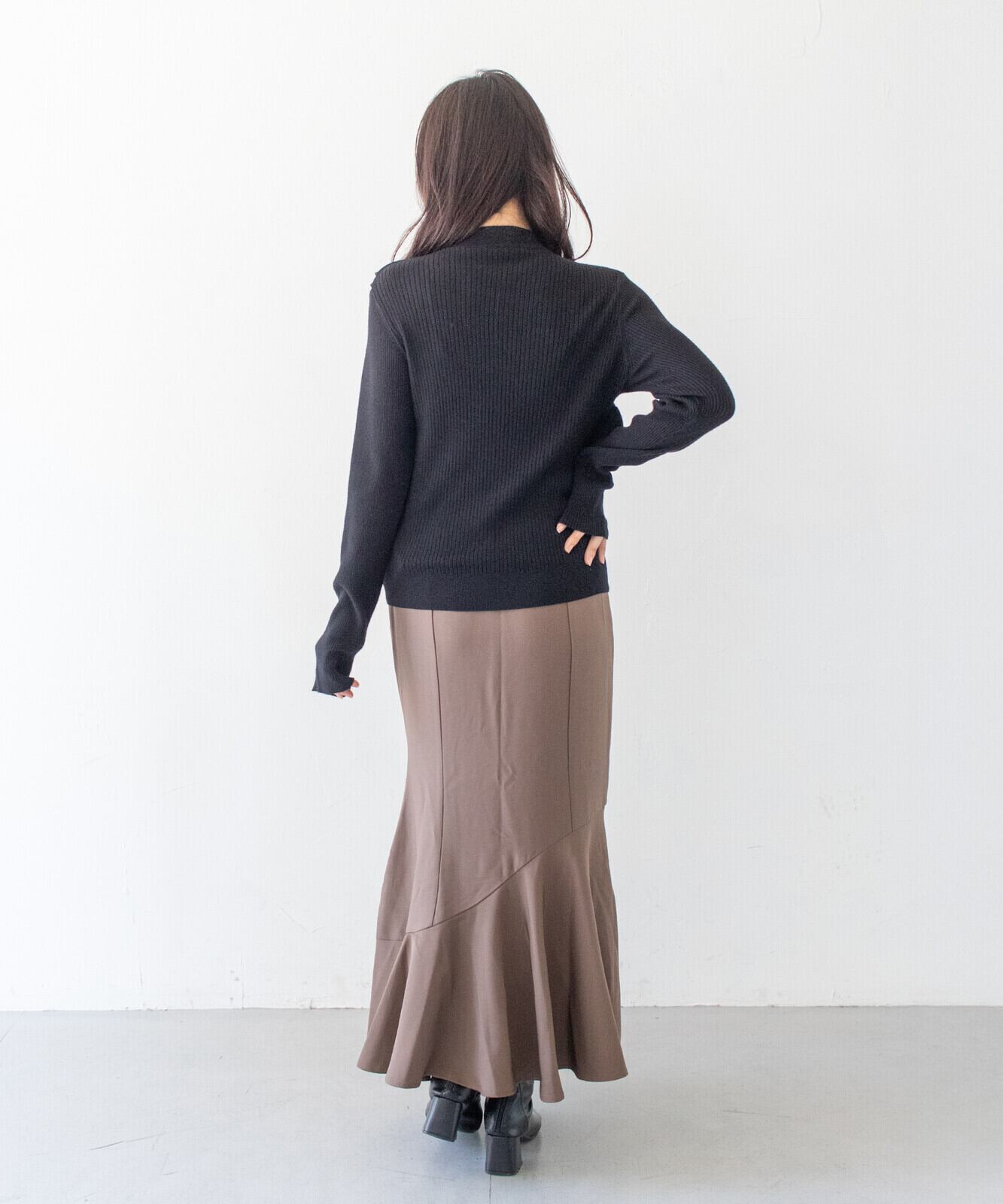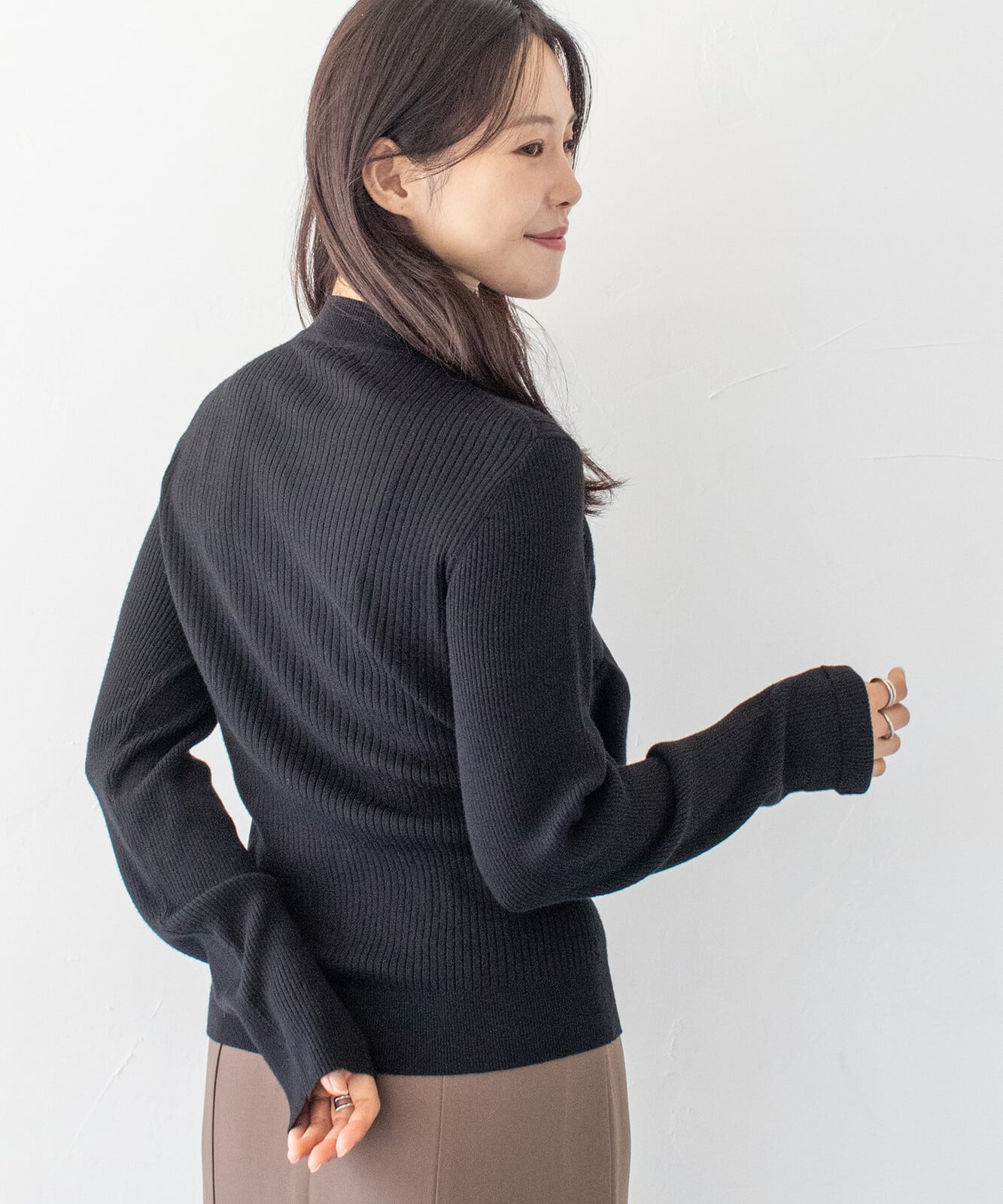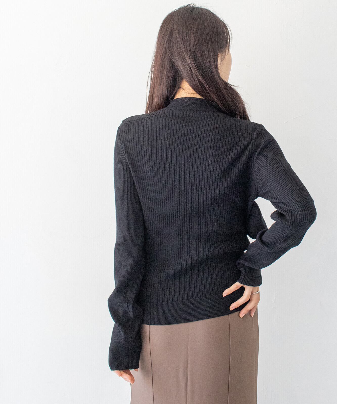 アシンメトリーにつけた立体的なフリルが、顔まわりを華やかに見せて女性らしさをプラス。縦のリブラインがシルエットをスッキリ見せ、上品な印象に。体に程よくフィットし、動きやすく快適な着心地。きちんと感を出しつつ華やかさを忘れないデザイン。スカートでフェミニンに、パンツで大人カジュアルにとオン・オフで幅広く使えます。