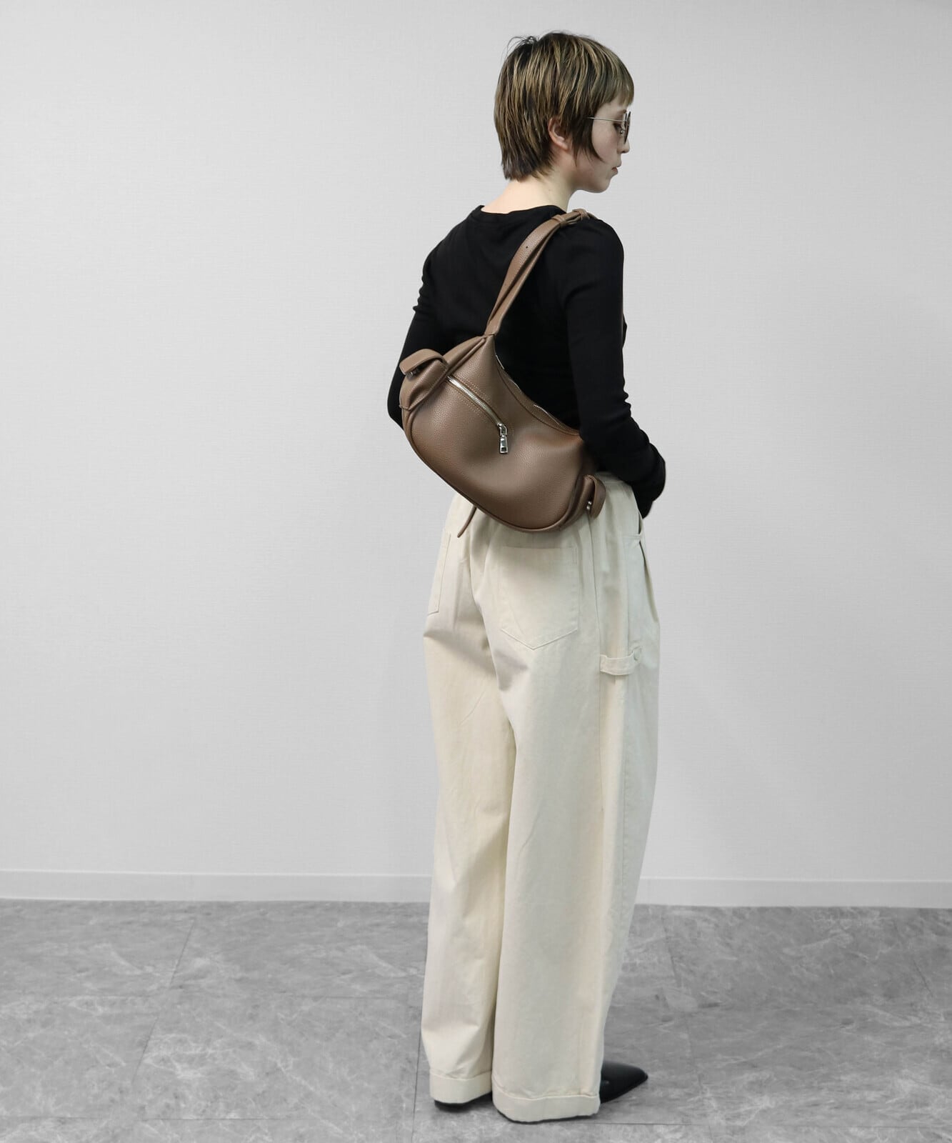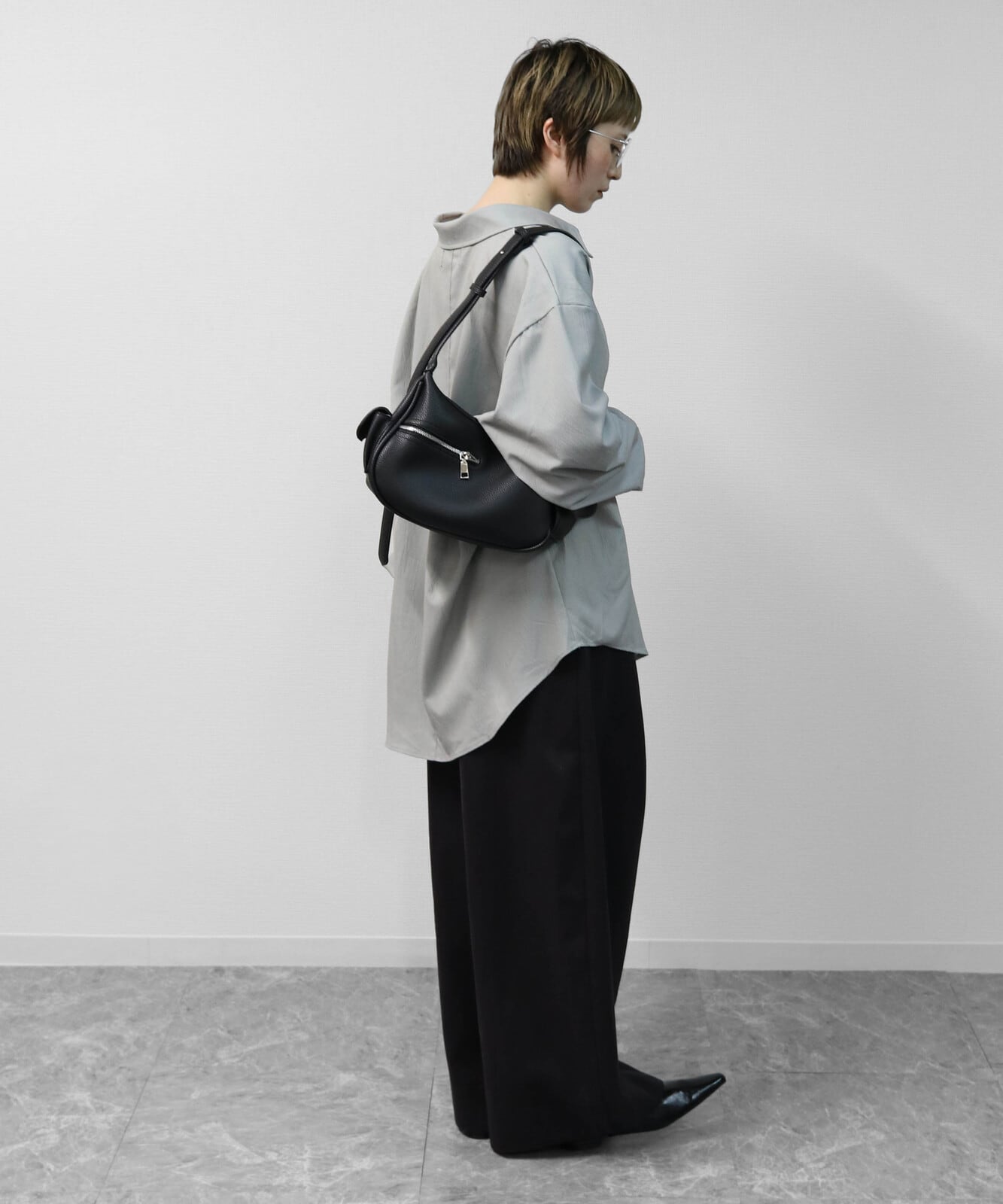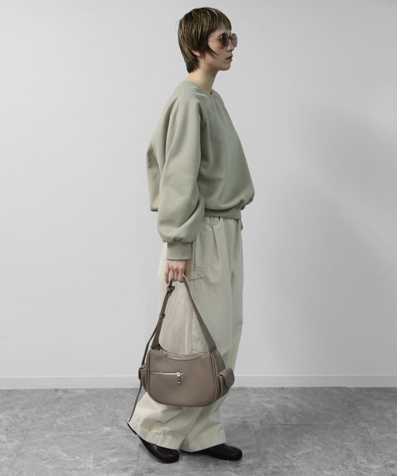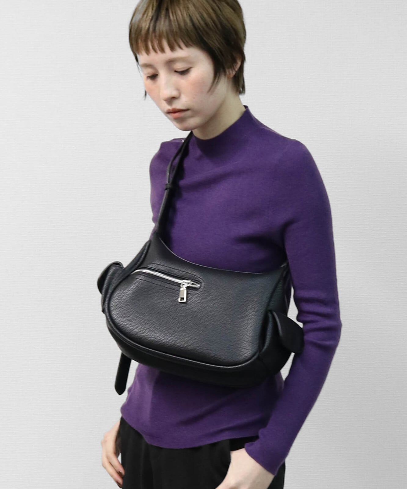 丸みを帯びた柔らかな曲線が、女性らしく大人カジュアルな雰囲気を醸し出すショルダーバッグです。フロントのジップやサイドの立体的なポケットが絶妙なアクセントになり、 シンプルなスタイリングに投入するだけで今っぽい「こなれ感」をプラス。体にフィットするスリムなマチ設計なので、コ ートの上からでもすっきりと持ちやすく、デイリーからお出かけまで幅広く活躍します。