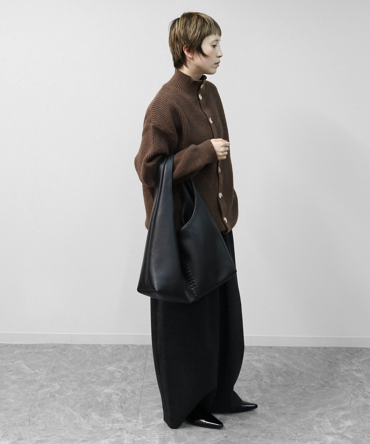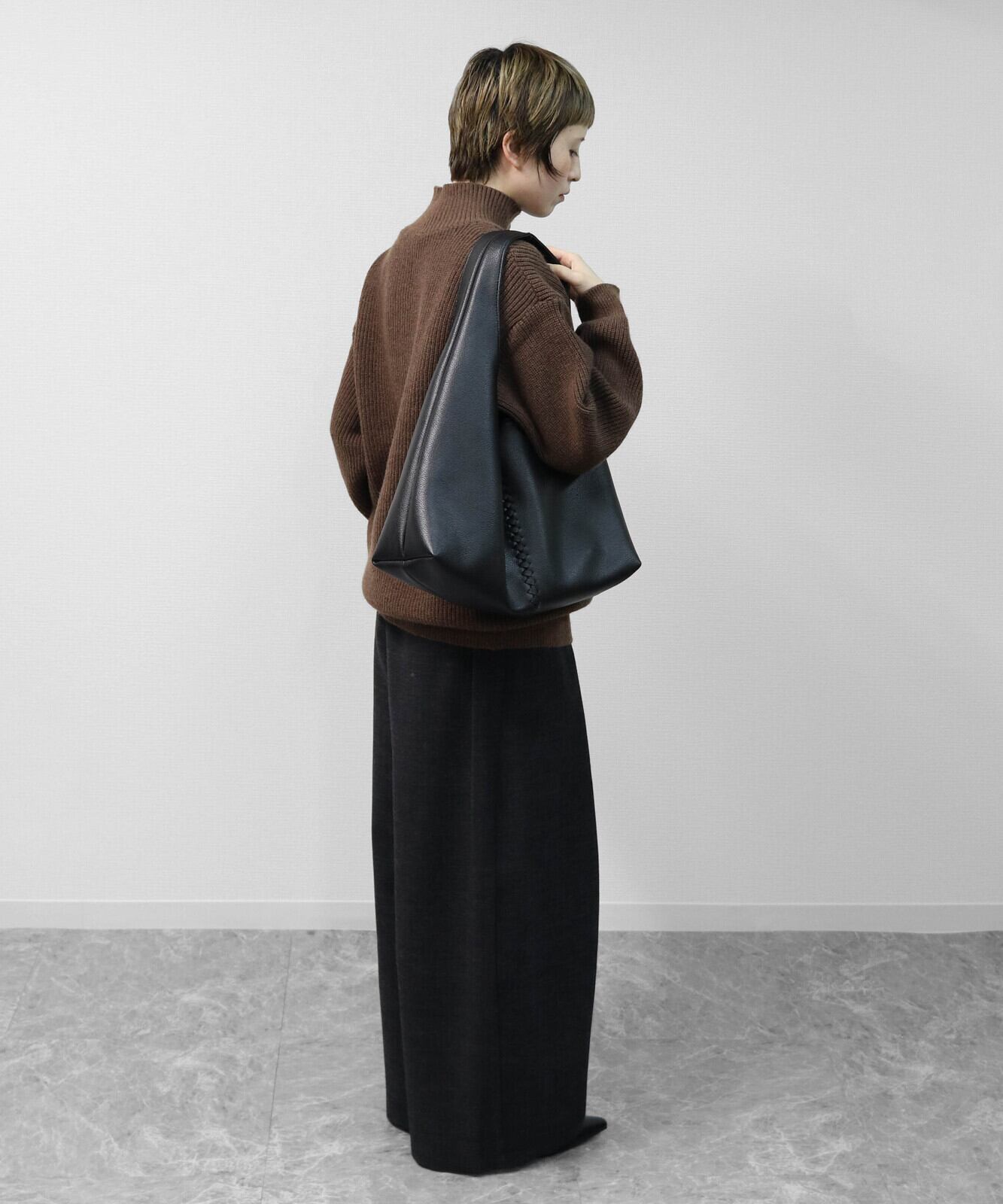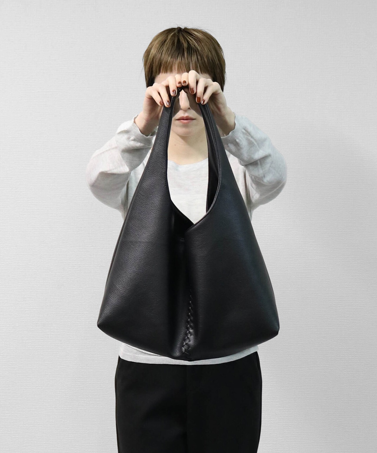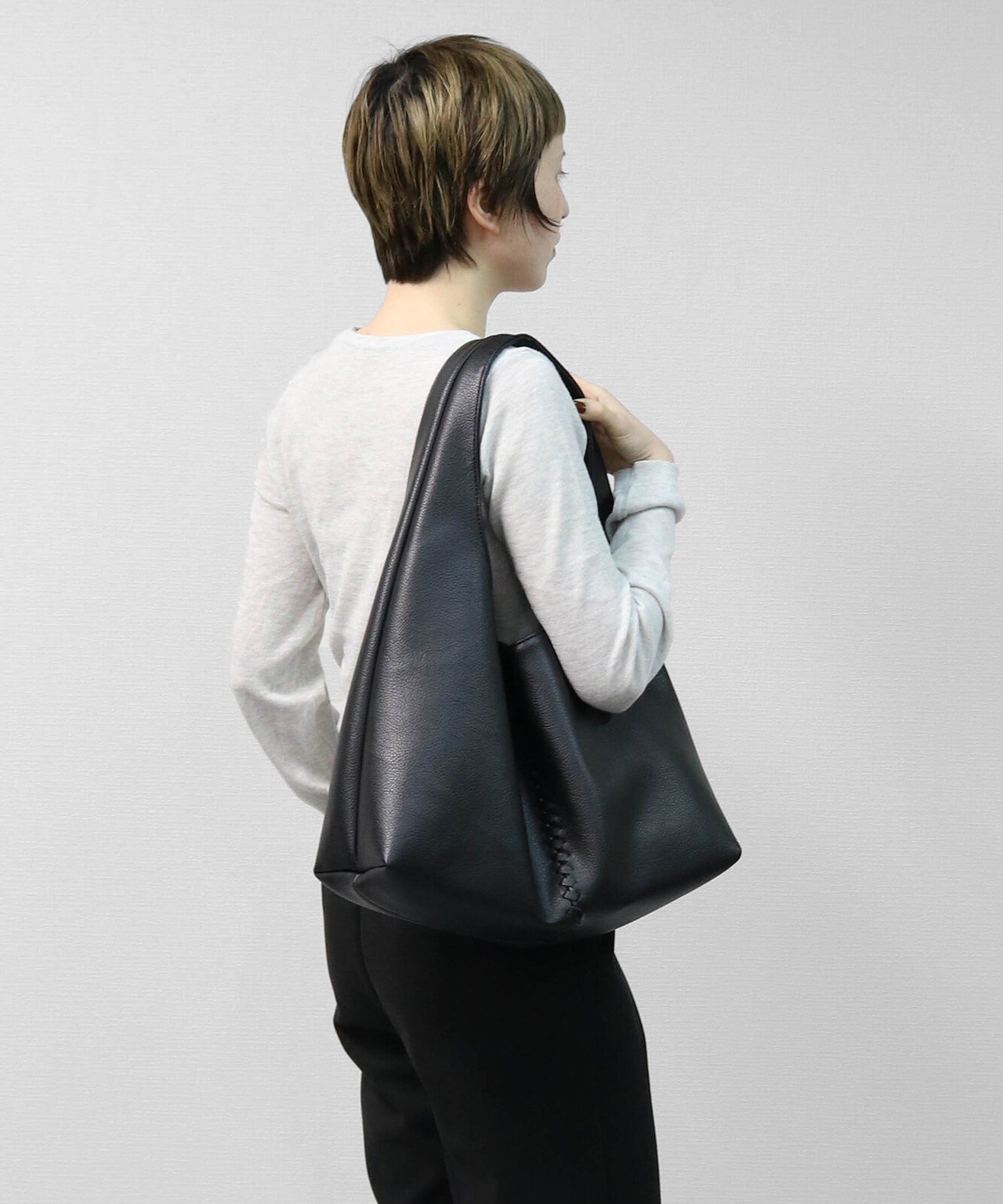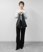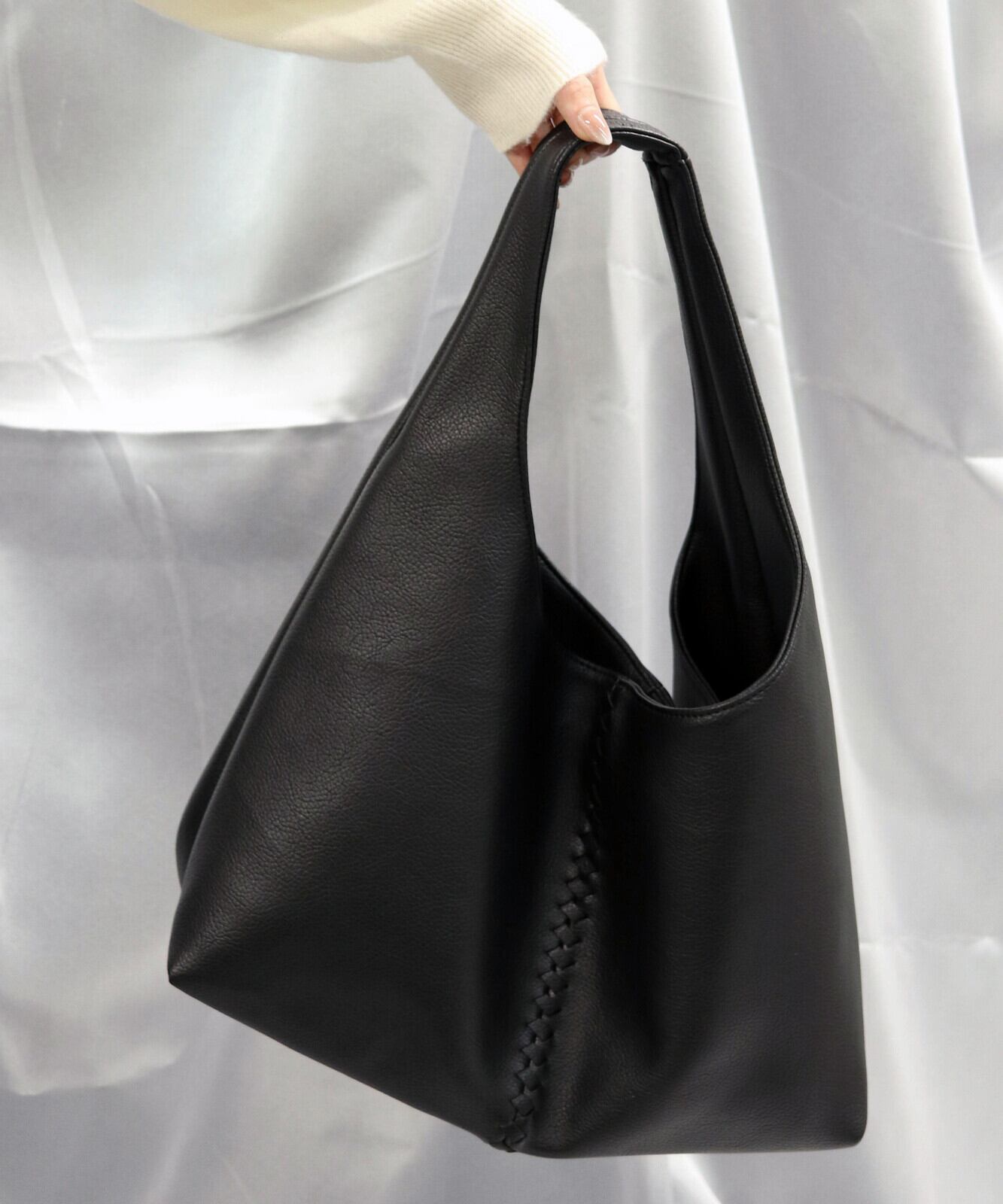 フロントに施された編み込みのセンターシームが際立つ、洗練された都会的デザイン・肩に心地よくフィットし、洗練された「縦長ライン」を強調するワンショルダー仕様・荷物を入れることで生まれる、しなやかで優美なドレープシルエット・ミニマルながらも存在感を放ち、どんなコーディネートも格上げするモードな空気感。A4サイズ対応。