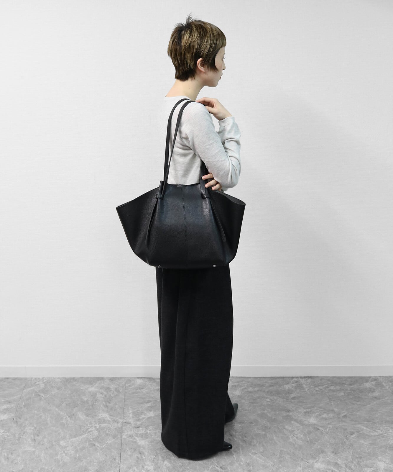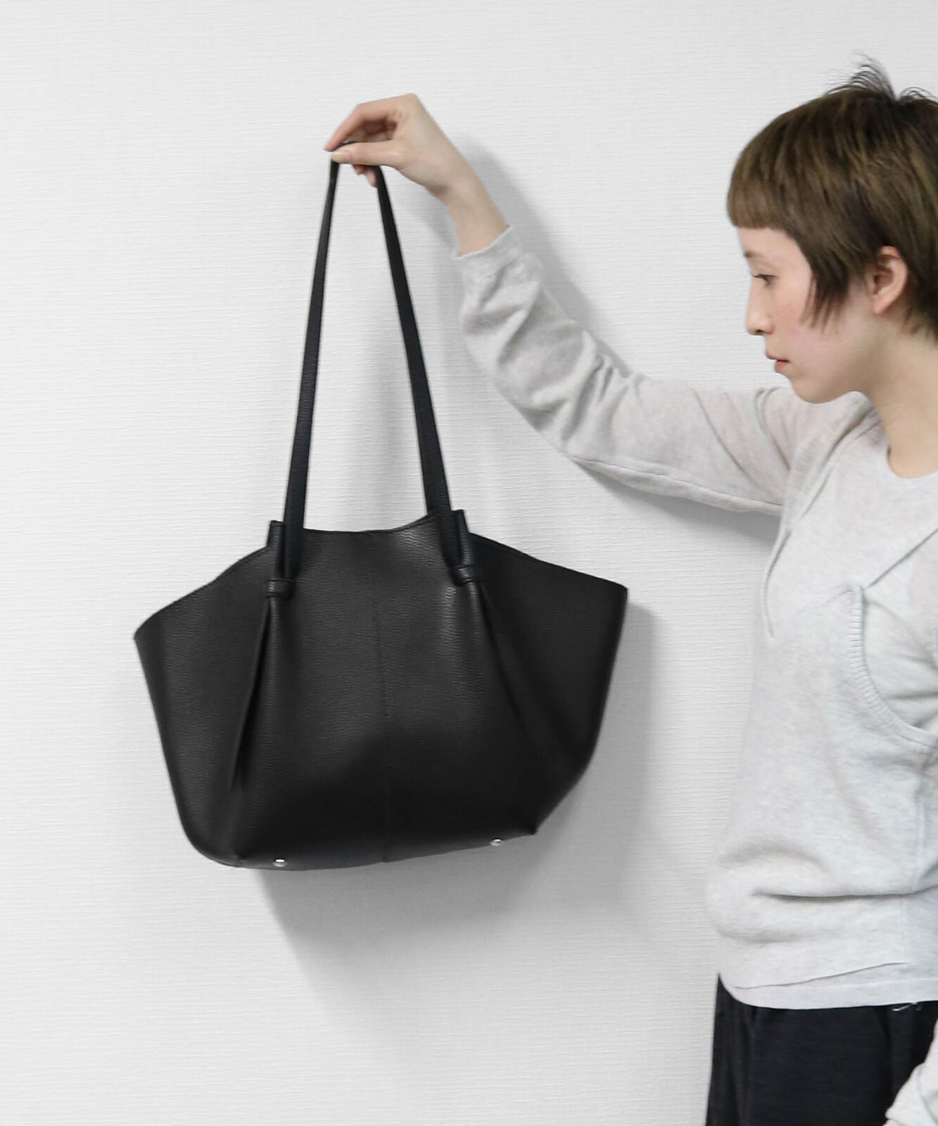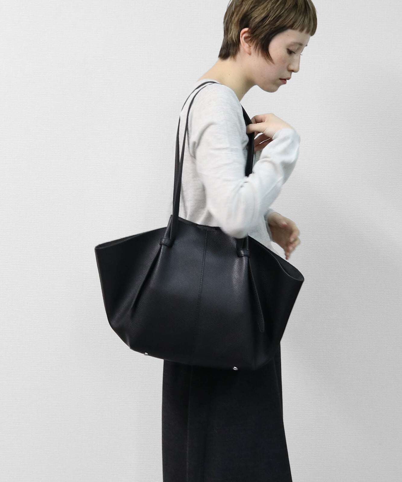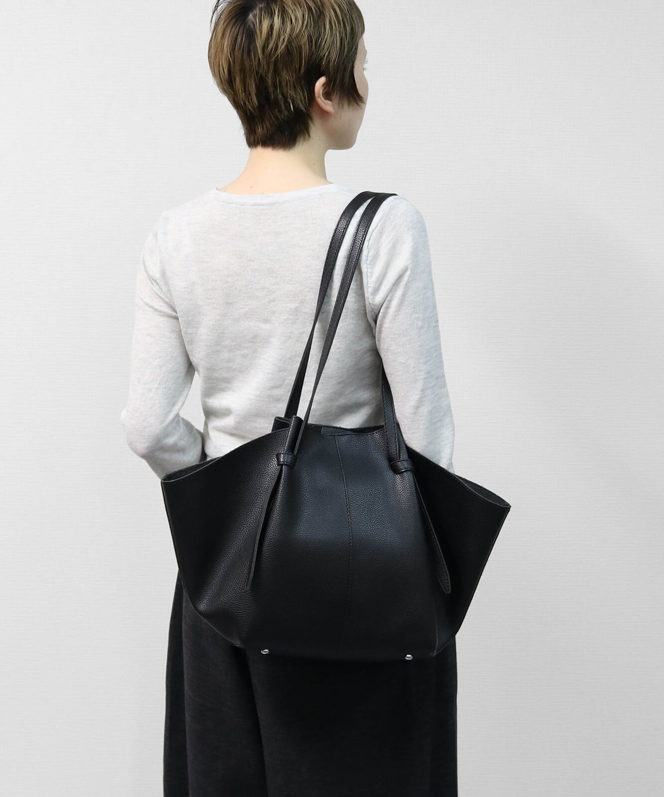 A4サイズがしっかりと収まるゴールデンサイズで肩掛け可能な長さのハンドルなどデイリーに使っていただきやすいポイント。ビジネスシーンから普段使いまで幅広いシーンでの活躍が期待されるアイテムです。
